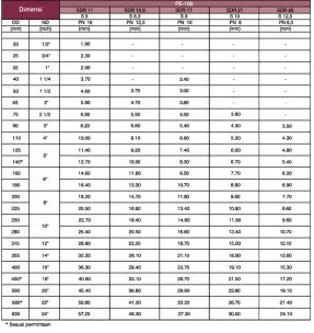 Diproduksi dengan ukuran diameter luar mulai dari 20 mm hingga 630 mm.